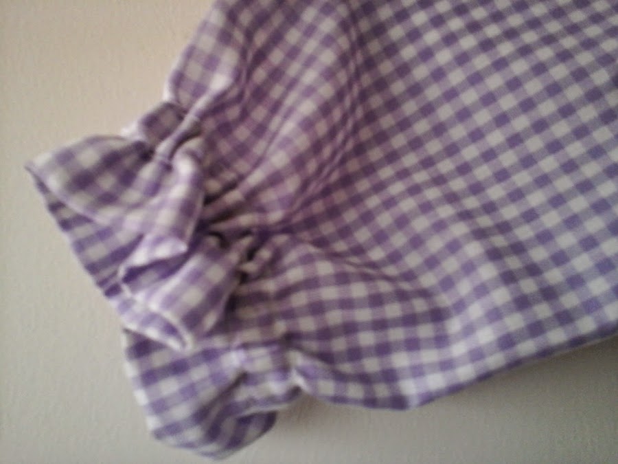 Cómo ves en la imágenes añadí al babi una pinza delantera por que me quedó un poco grande y así lo solucioné y además queda más gracioso dándole más movimiento. 5.- Vamos a por las mangas...lo más complicado. Yo lo hice cogiendo una sudadera y dibujando las mangas en papel de seda. Pasar el dibujo a tela y recortar la figura, recuerda hacerlo grande para que te sobre y no te falte tela. Mi madre me recomendó hilvanar y fruncir la zona de los hombros antes de unirlas al vestido. Una vez hecho lo vas acoplando por el revés de la sisa del vestido y lo vas cosiendo...paciencia!!! 6.- Cierra las mangas por su parte interna y coloca un elástico en la zona de la muñeca...no olvides ir probando a tu peque una y otra vez.