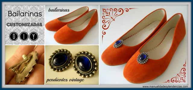 ¡Buenos días! No es ningún secreto que me encantan los zapatos, sobre todo las bailarinas porque son cómodas, existen en multitud de estilos y colores y se pueden customizar!! En el DIY de hoy podéis ver cómo he personalizado unas alegres bailarinas naranjas con la ayuda de unos pendientes vintage que compré en un mercadillo de segunda mano. La ventaja de utilizar pendientes de clip es que podéis quitarlos y ponerlos cuando queráis sin dañarlas.