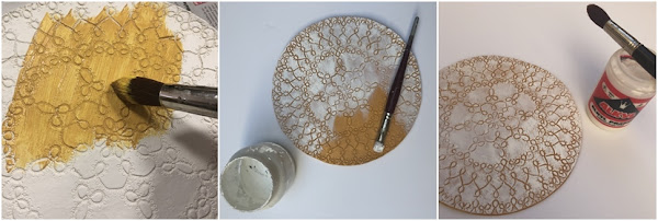Es hora de pintar. Con pintura a la tiza de un color más oscuro, (en mi caso color mostaza) pinta toda la superficie.