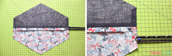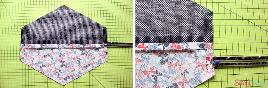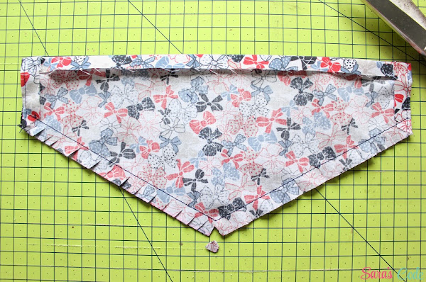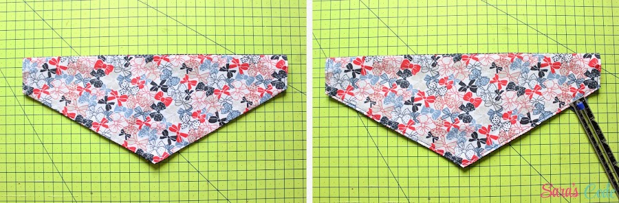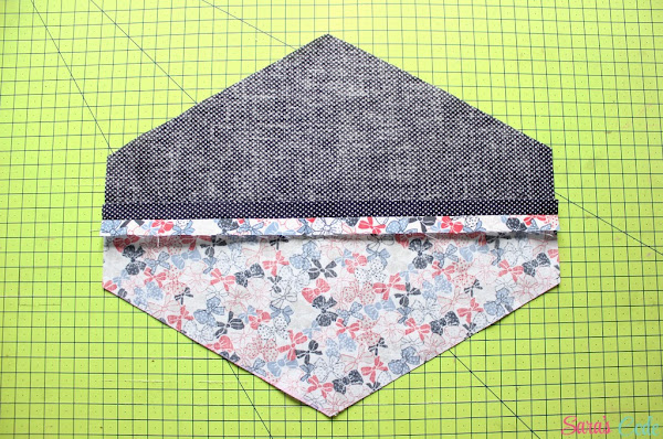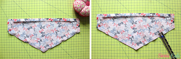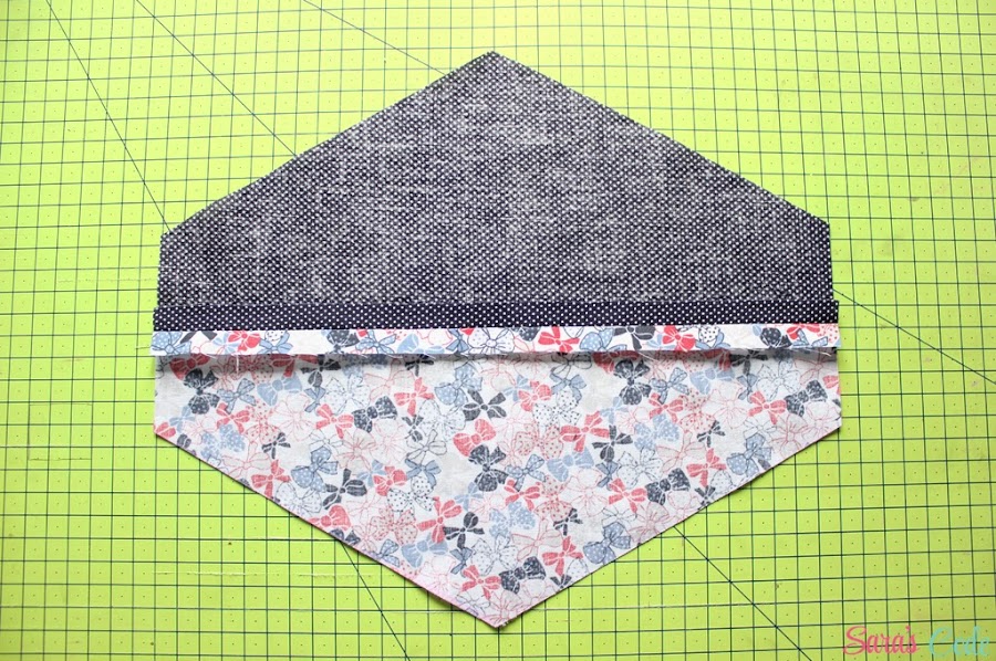 ? Cosemos una puntada recta y un margen de costura de 1/2" (1,3 cm) ambos bordes del triángulo.
