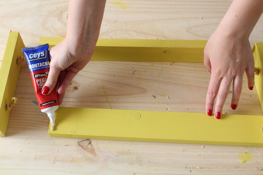 4 Paso: Pintamos los listones del color de nuestra elección y dejamos secar.