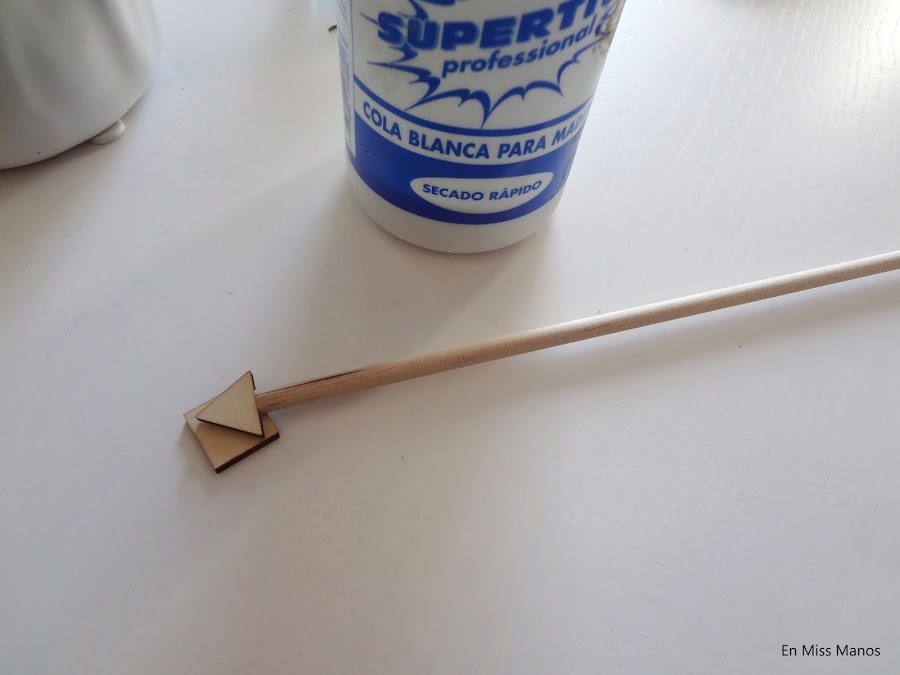 Y para acabar le puse un triángulo de madera en cada extremo de la varilla.
