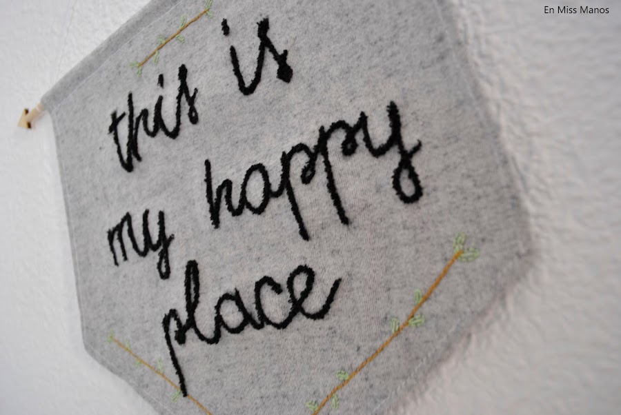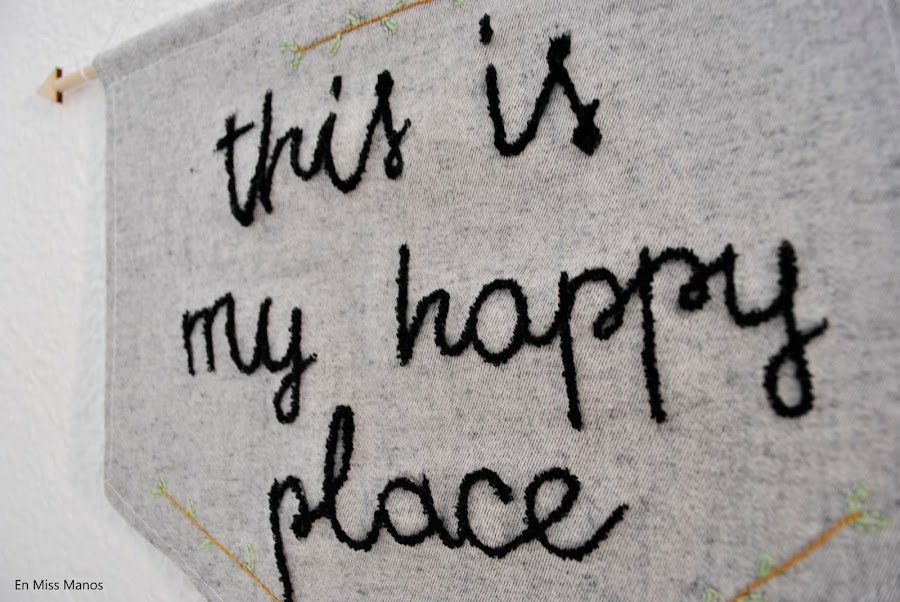 Luego dibujé la frase "this is my happy place" y unas ramitas que también quería bordar.