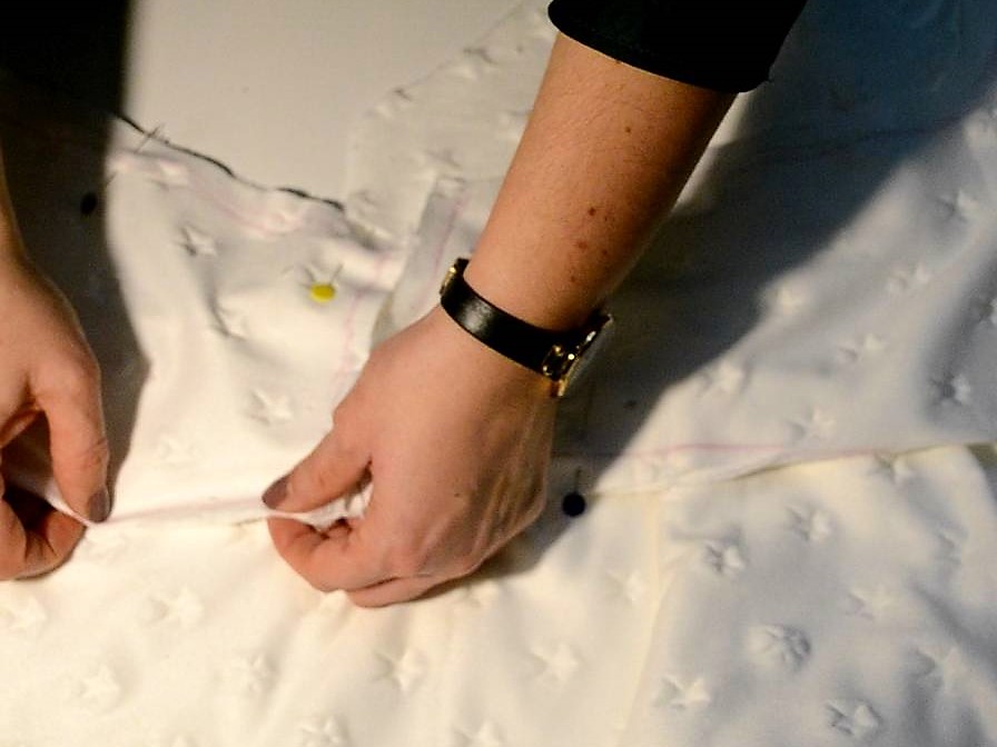 Estas costuras, si no hilvanamos, lo mejor que podemos hacer es planchar antes de coser, para que quede en su sitio y no se nos mueva al coser a maquina y más con esta tela. Yo os aconsejo si no tenéis mucha practica que lo hilvanéis, que no tardáis tanto y siempre va a quedar mucho mejor, y además del hilván un planchazo y después la costura a maquina.