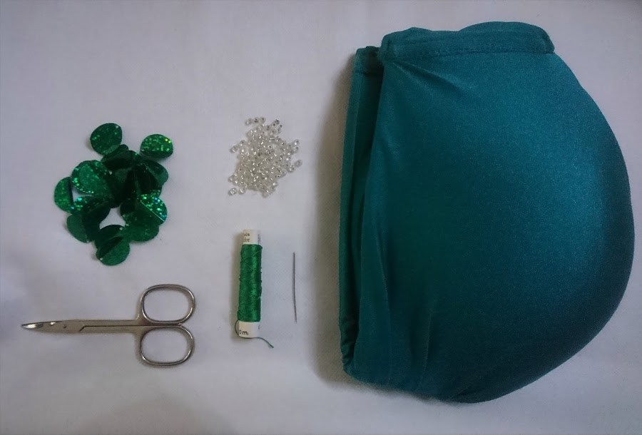 Lo primero que haremos es dar forma a las flores, tal y como os enseño en el vídeo que os muestro a continuación (Está en proceso de subirse a mi canal de youtube, cuando esté listo, modificaré la entrada del blog). Esta es la flor central que está hecha con 4 lentejuelas más grandes y en el centro pongo 8 abalorios. El resto de las flores tienen en su interior 3 abalorios.