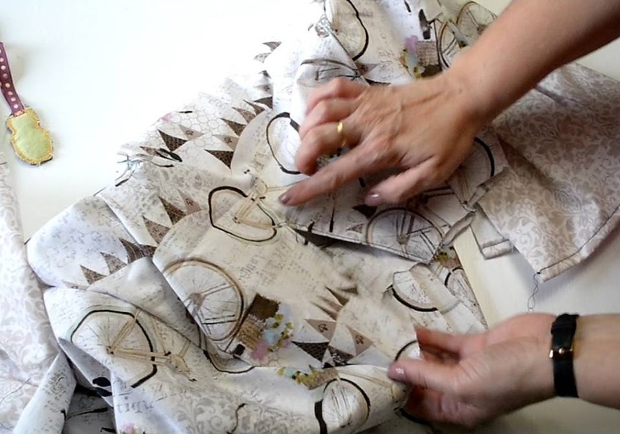 En la tela elegida, yo elegí otra, pero puede ser la misma cortamos las dos tiras para los volantes de las mangas.