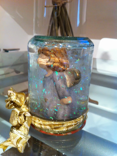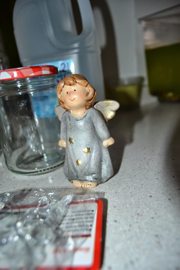 Figuras. Podéis hacer una o aprovechar algo por casa. Yo compré el angelito en la Superpapelería.