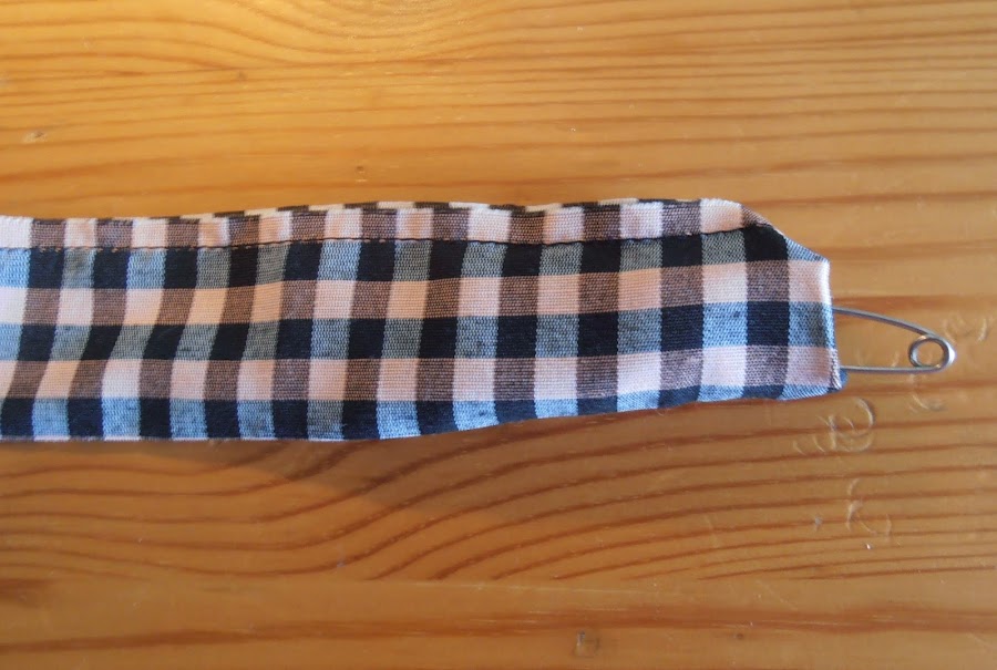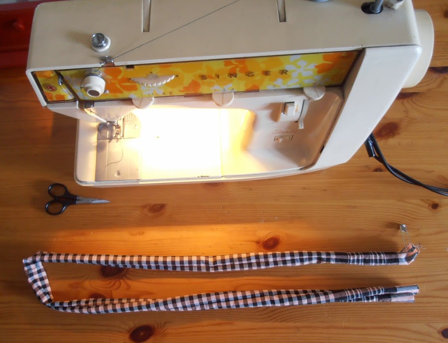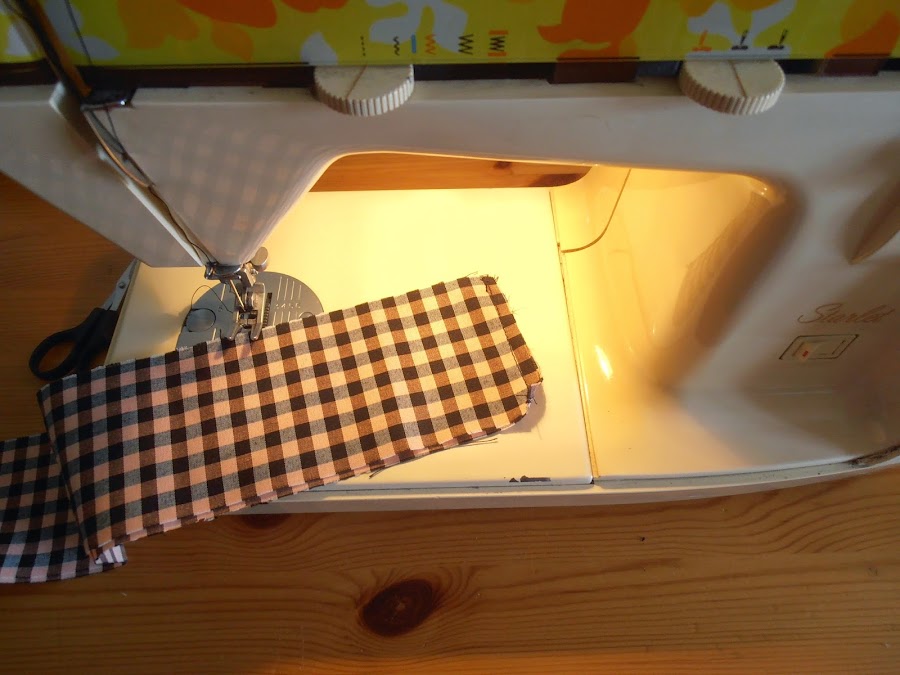 Primero coso las dos tiras del asa, para unirlas y formar una sola.