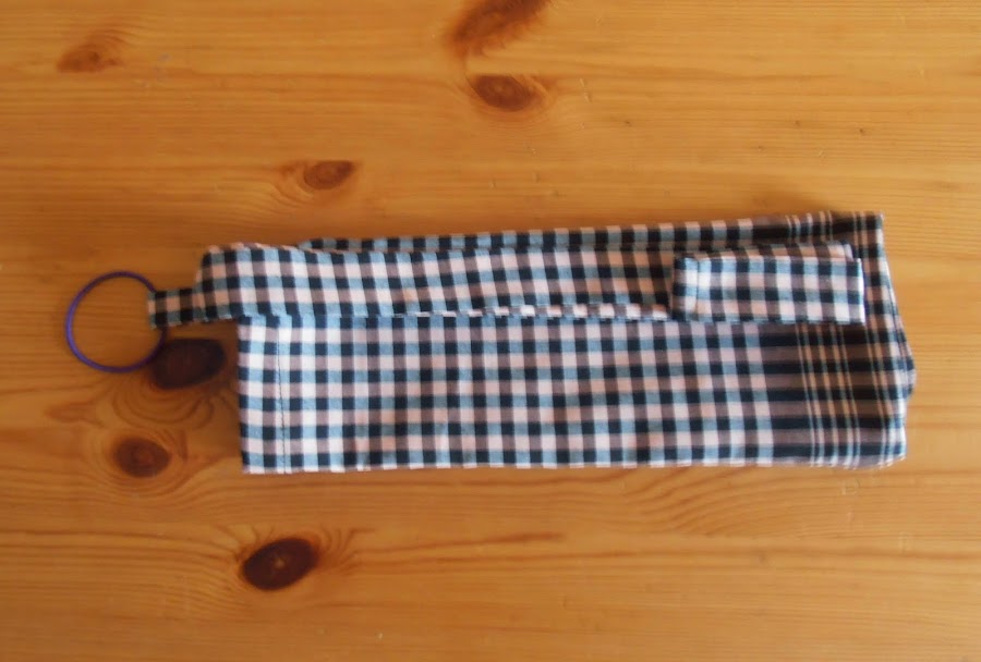 Como la tira que forma el asa, está del revés, con un imperdible, le doy