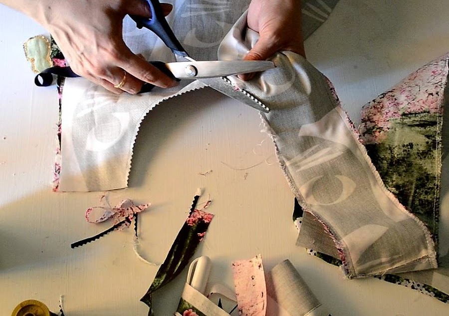 Cuando hacemos esa costura, lo que hacemos es cortar con las tijeras de zig-zag todo alrededor, para poder dar la vuelta bien, sin que se quede la tela arrugada.