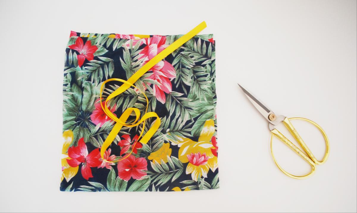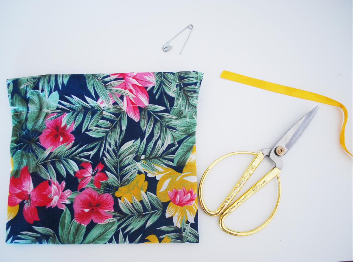 Para hacer esta bolsita, solo necesitaras un trozo rectangular de tela del tamaño que quieras la bolsa (recuerda dejar un poco de margen de costura y un poco más en los extremos para poder hacer el dobladillo).