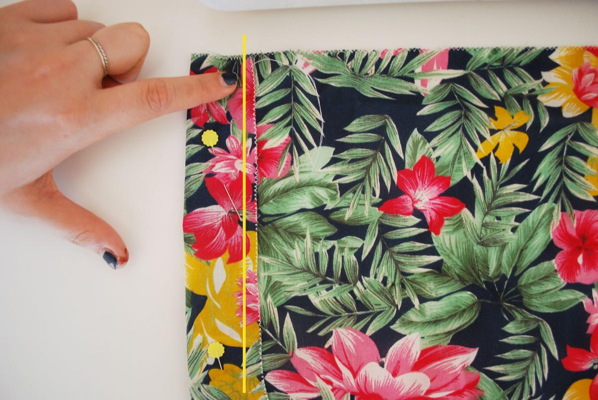 Coseremos al lado de la costura en zig zag (por la linea amarilla de la foto)