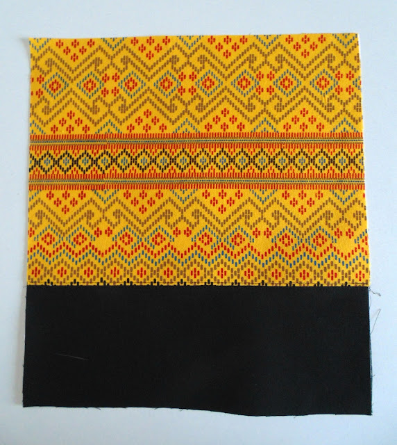 Uní cada rectángulo pequeño negro con cada amarillo, planché y pasé dos pespuntes por el derecho.