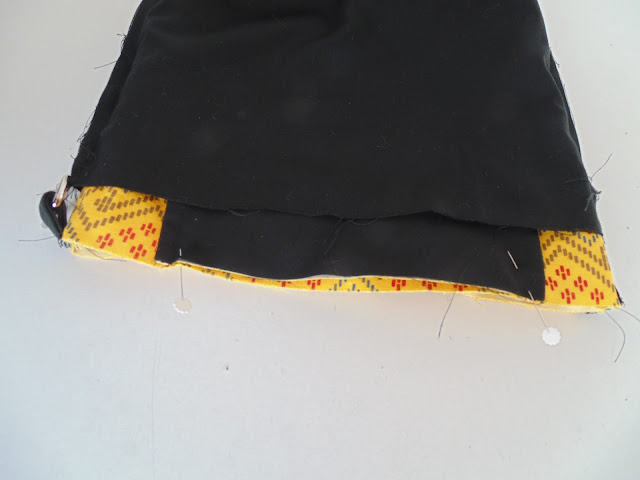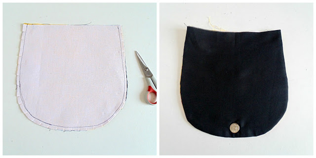 Para la tapa cosí las dos telas con los derechos enfrentados por la parte arrendondeada e hice unos piquetes.