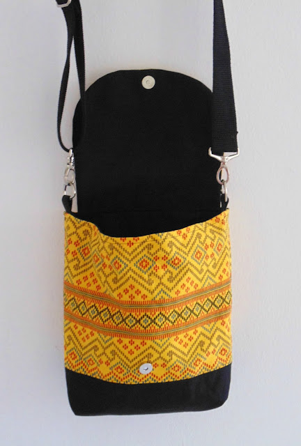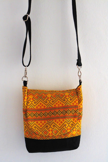 La tela amarilla que utilicé para confeccionar este bolso me la han traído de Tailandia hace unos meses, es 100% algodón tipo loneta.