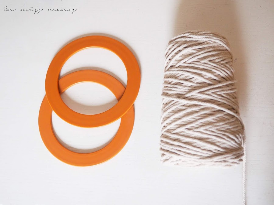 Lo único que necesité fueron un par de asas redondas, que le quité a un bolso de playa hace la tira de tiempo, y un rollo de cuerda de algodón , en este caso de 3mm y 200m de largo.