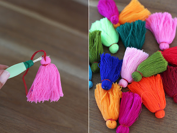 Con esta ola de calor que se nos ha venido encima (aquí llevamos una semana que pasamos de los 33 graditos...), nos ha apetecido poner este último diy veraniego que teníamos guardado y que no nos había dado tiempo de enseñaros. Con la fiebre del estilo boho, la moda de los los pompones de colores y las escapadas de finde veraniego que todavía vamos a aprovechar, hemos decidido darles un nuevo aire a nuestros capazos siguiendo la idea de este tassel bag charm. Se trata de costumizar un bolso básico de rafia, mimbre o similar, con unos pompones de colores unidos por hilo de pescar. ¡Aviso! Los pompones viene pisando fuerte y no sólo para verano, también para dar color a decoraciones otoñales, así que los podemos reutilizar en cojines, mantitas u otros textiles.