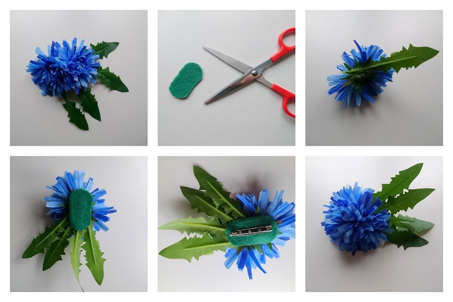 En primer lugar empezaré a dar forma al broche que usaremos para decorar el bolso, para que se vaya secando bien el pegamento y evitar que se dañe a la hora de colocarlo. Para ello quitamos los rabitos y las hojas de las flores y las colocamos y movemos hasta encontrar la forma que más nos guste, a continuación, cortaremos un trozo de fieltro con forma alargada, que reservaremos para el final del broche, una vez hecho esto, iremos pegando poco a poco, las flores y las hojas para dar la forma elegida al broche, una vez acabado, pegamos el trozo de fieltro para que cubra la unión de las flores y hojas y sobre él pegaremos el enganche.