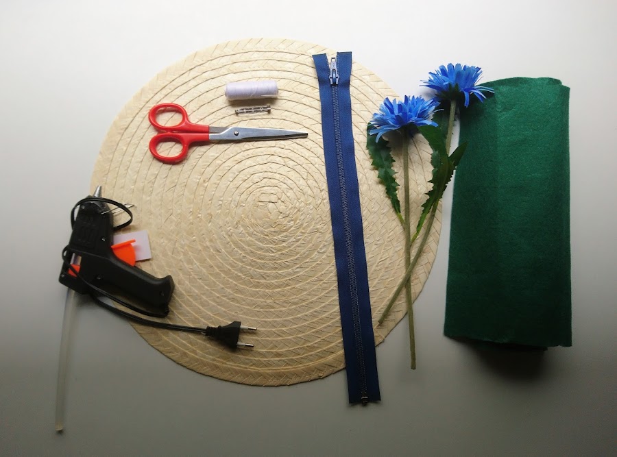 Necesitaremos:-Un mantel redondo de hoja de palma o rafia.