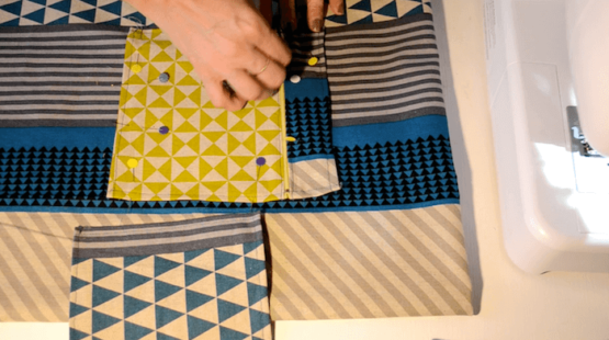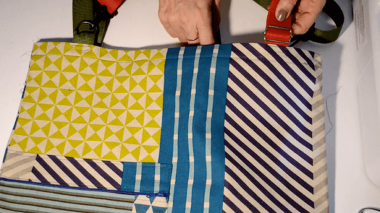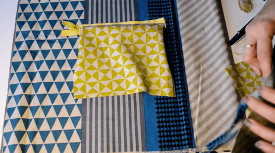 Una vez cosidos los bolsillos y con la tela doblada debemos unir el lateral del bolso, para poner la cremallera en la parte de arriba y así poner también los tirantes.