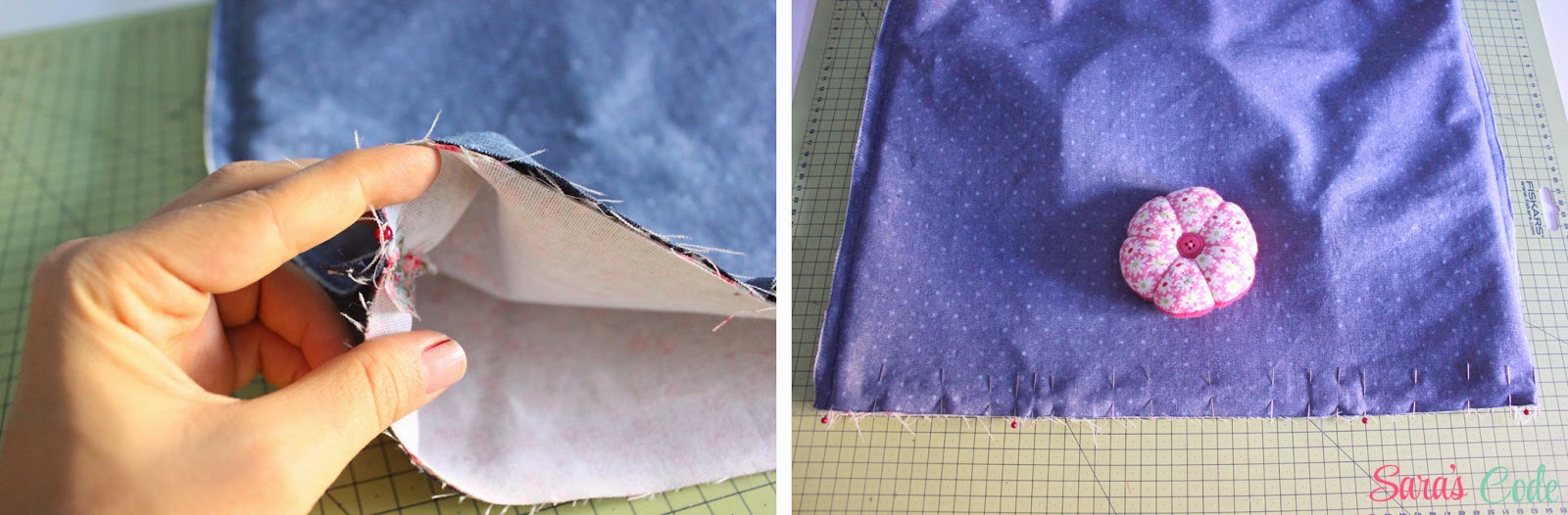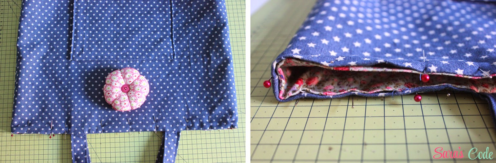 ? Cerramos la parte abierta, planchamos y sujetamos con alfileres.