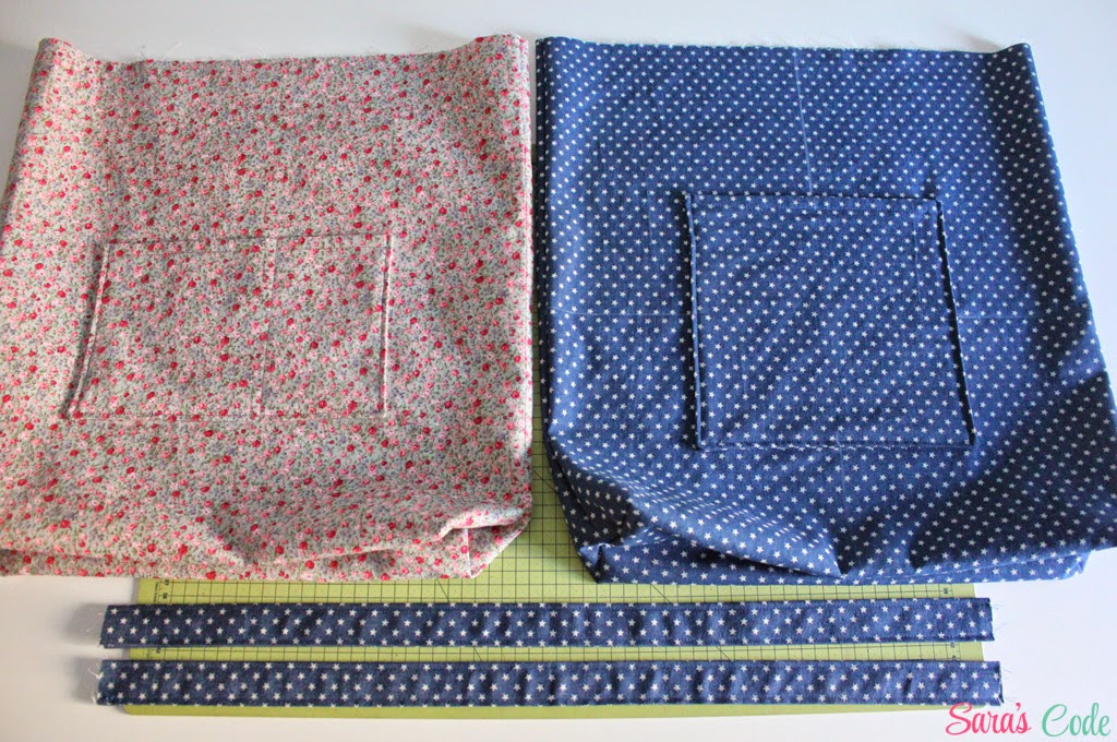 ? Prendemos con alfileres las telas con las asas.