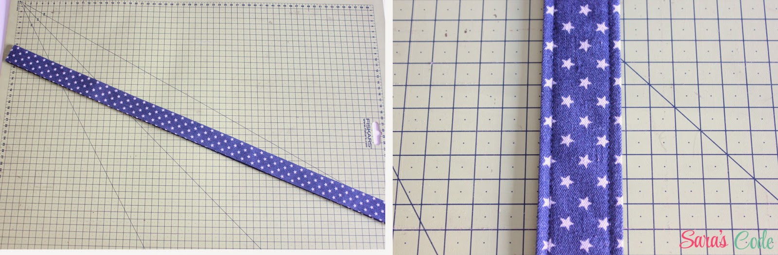 ? Cosemos, cerquita del borde, con un margen de costura de 1/4" (0,65 cm) a lo largo de ambos lados de la asa.