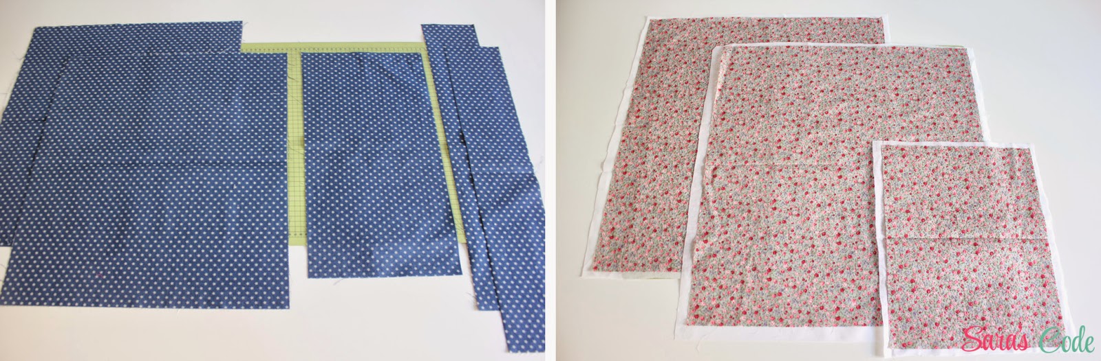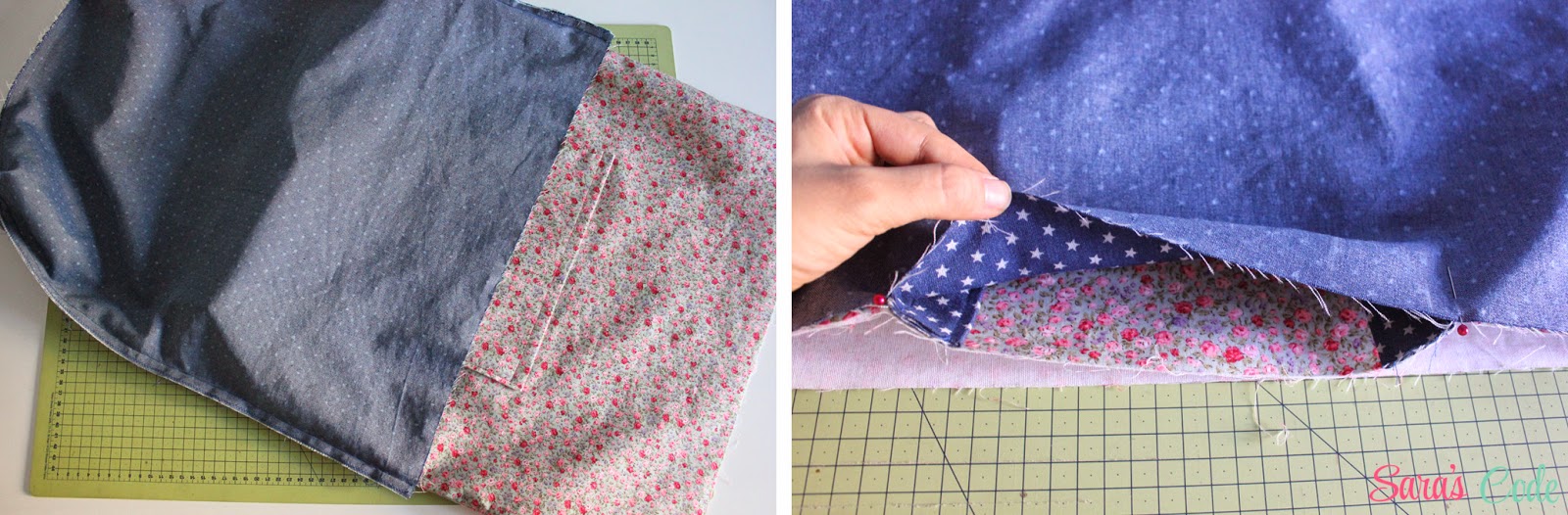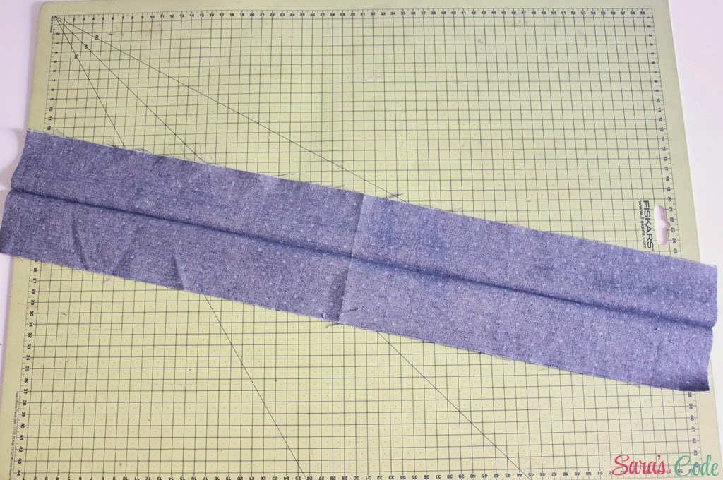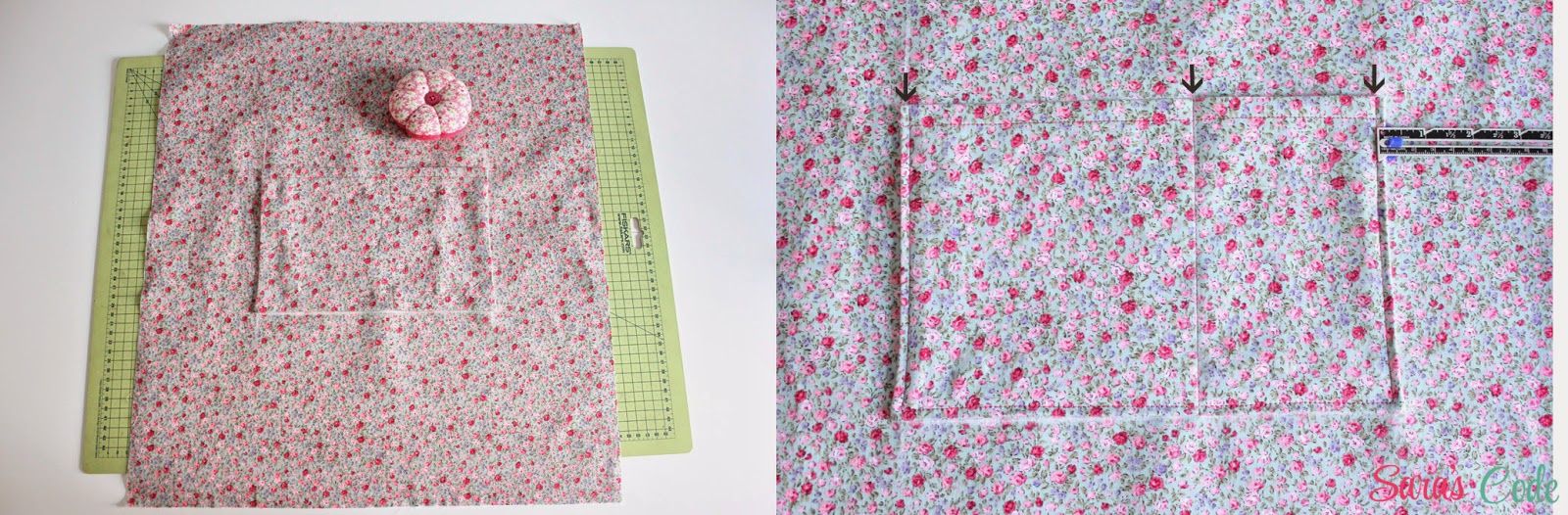 Como en este caso queremos dos bolsillos, coseremos una línea paralela, a 4" (10 cm) del lateral derecho.