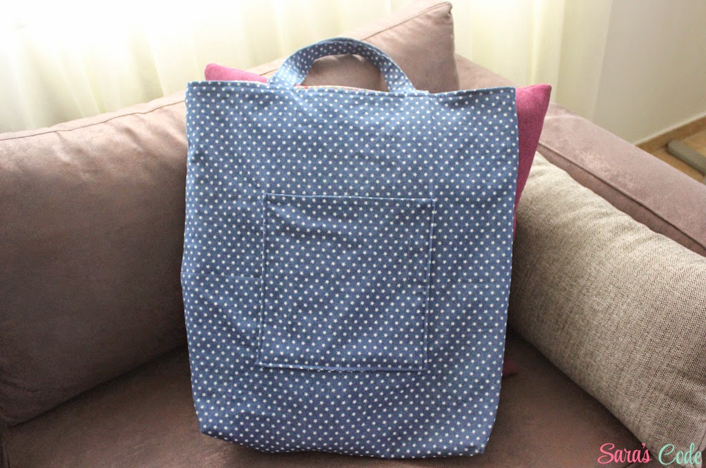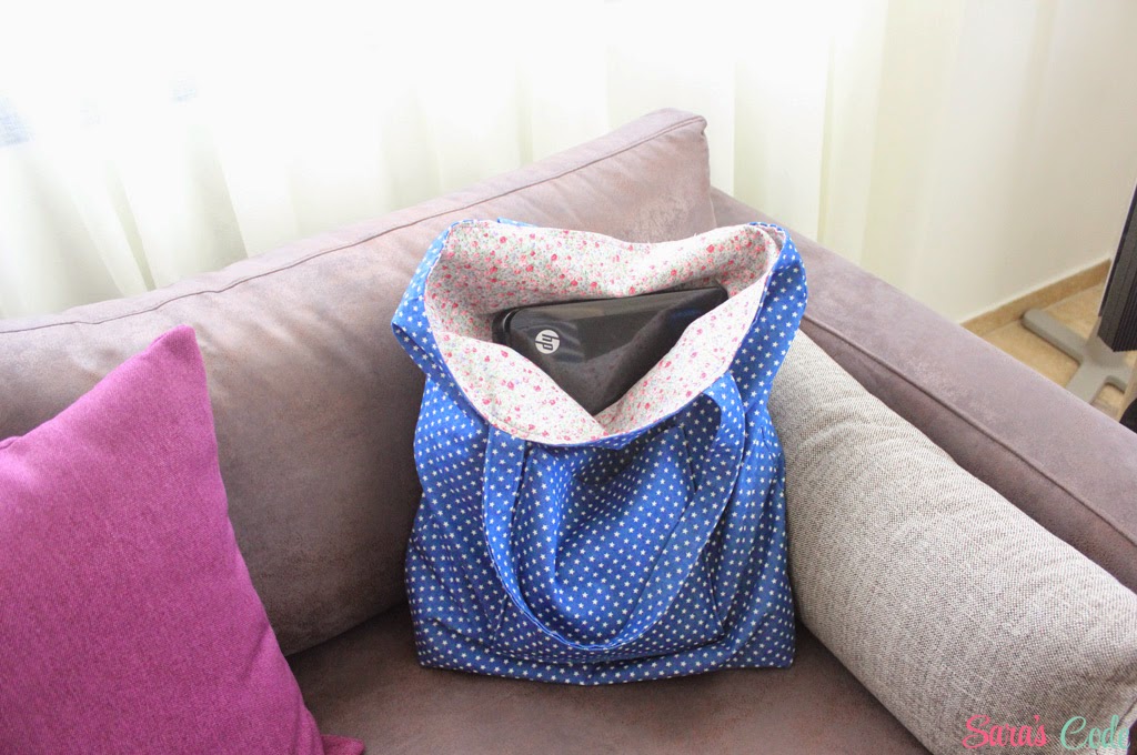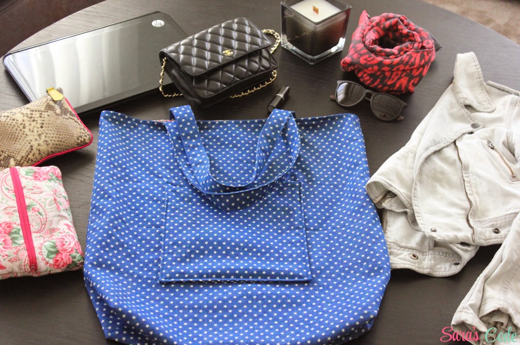 Estos días preparando mi viaje a Marruecos (desde donde estoy escribiendo este post) pensé en hacerme un bolso sencillo, con un par de bolsillos y en el que cabrían como mínimo todos mis aparatos (ordenador, cámara reflex, ipad...) un neceser, una chaqueta, un pañuelo y una botella de agua para poder subir conmigo al avión e ir de compras estando ahí.