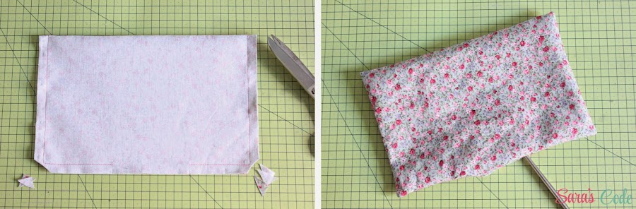 ? Cosemos, con un margen de costura de 1/4" (0,65 cm) los laterales y la parte inferior (asegurándonos de que la parte abierta haya quedado cerrada).