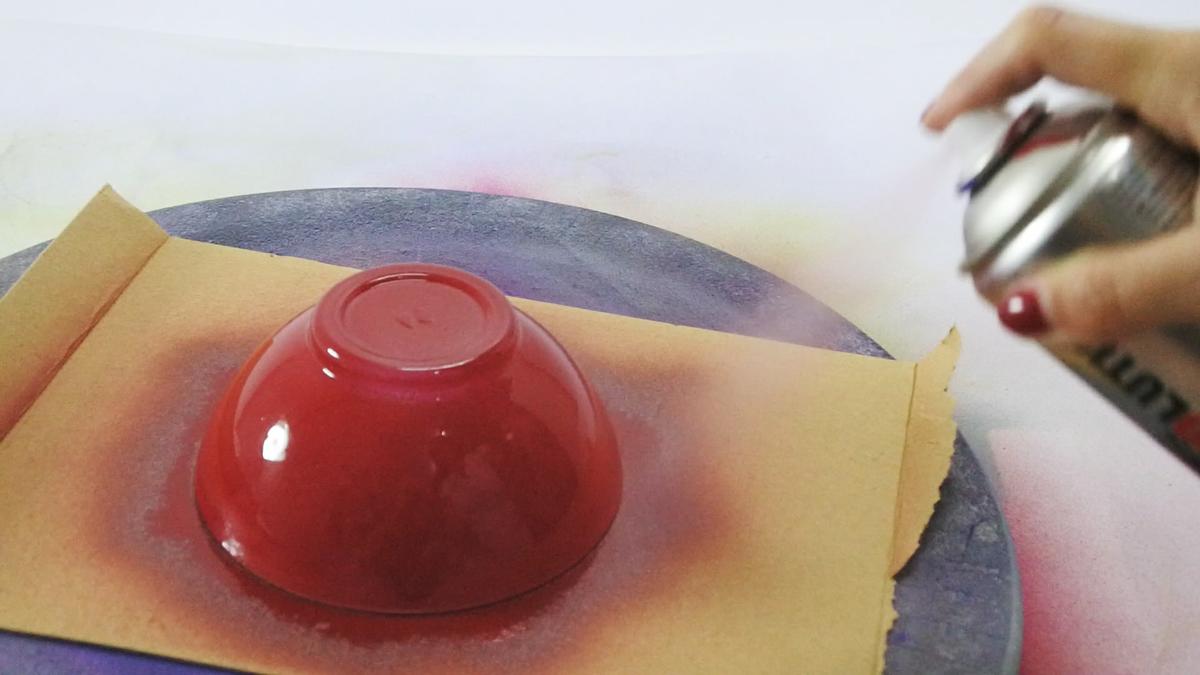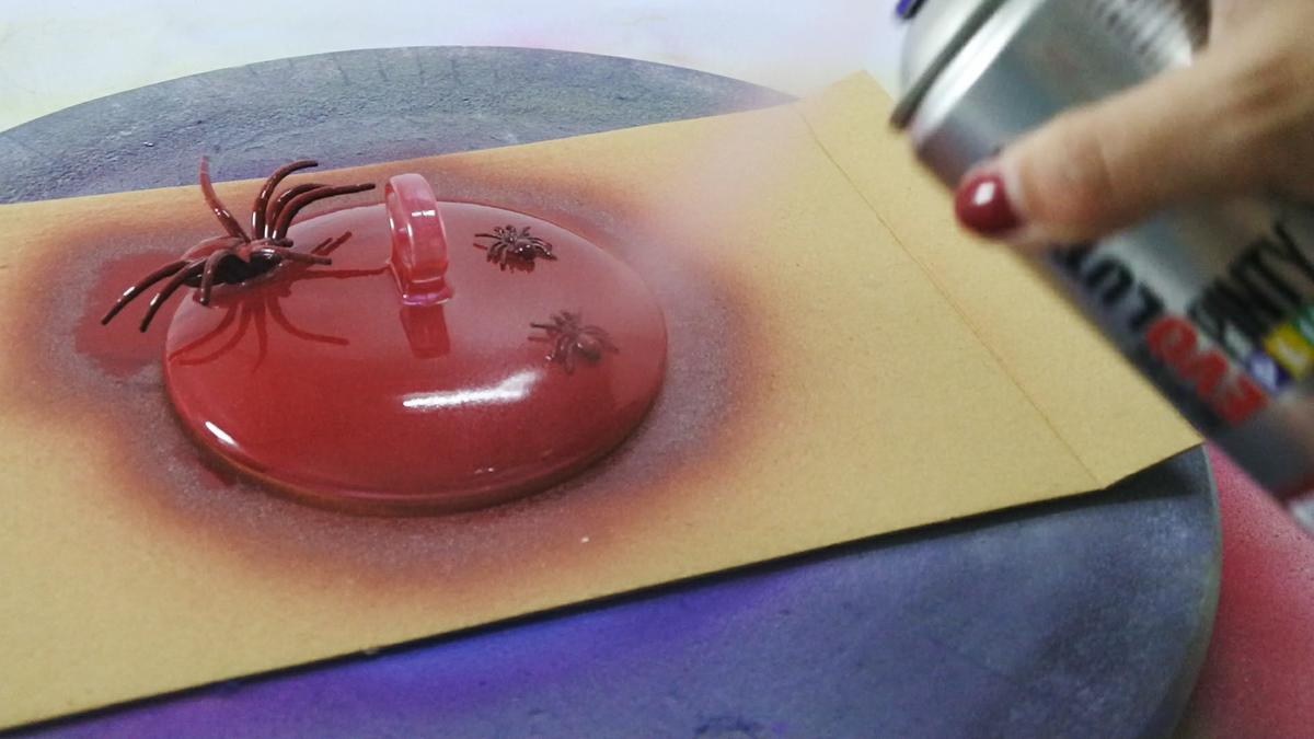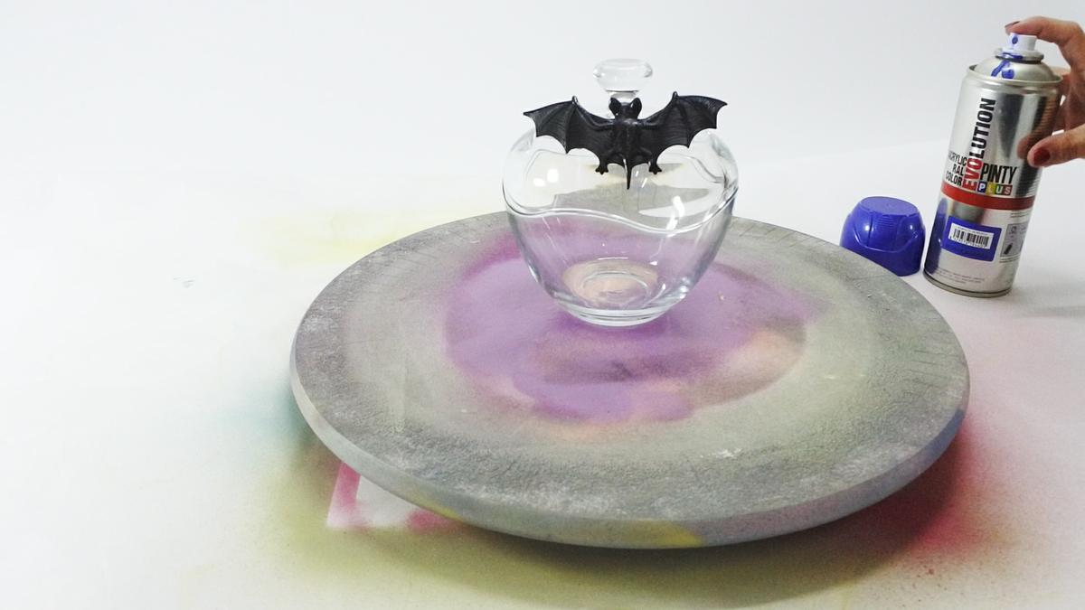 Una vez tenemos pegada nuestra composición, toca pintar. En nuestro caso, para que sea más fácil (y rápido) lo hemos hecho con pintura en spray. En concreto el spray metalizado de Pintyplus.