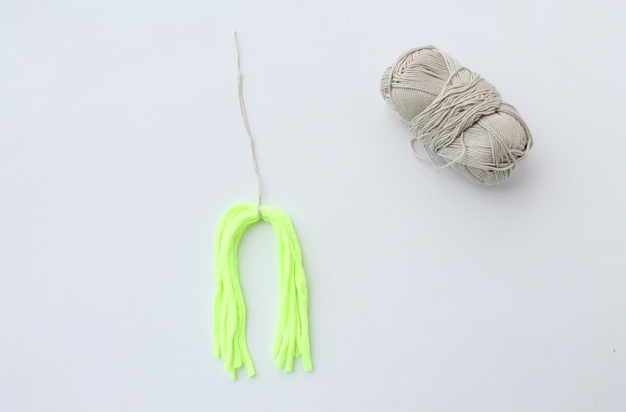 Cortar e igualar las tiras de trapillo para que la borla sea proporcionada