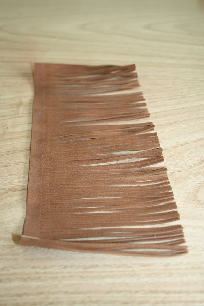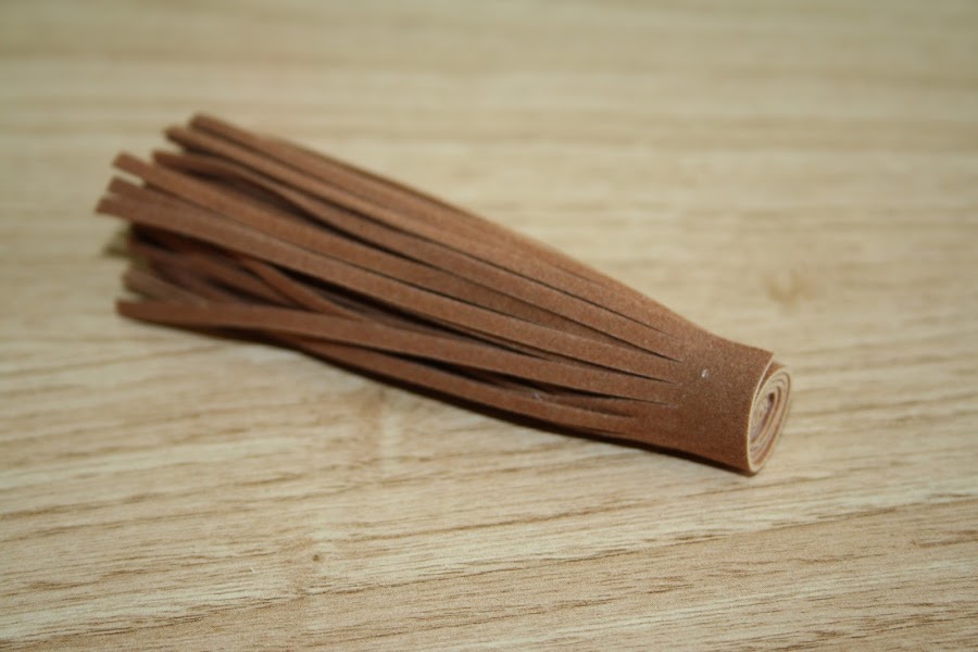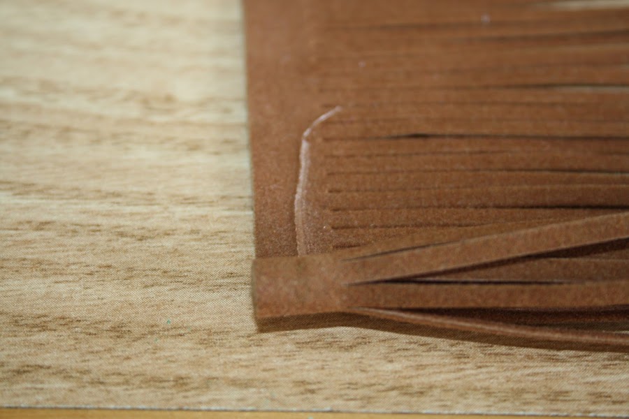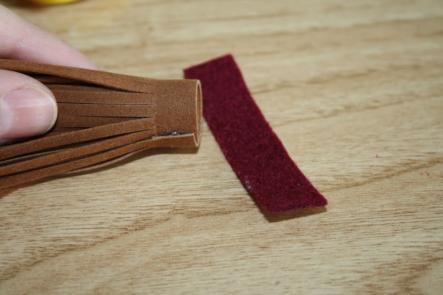 Doblamos la cinta de flecos sobre si misma y vamos pegando.