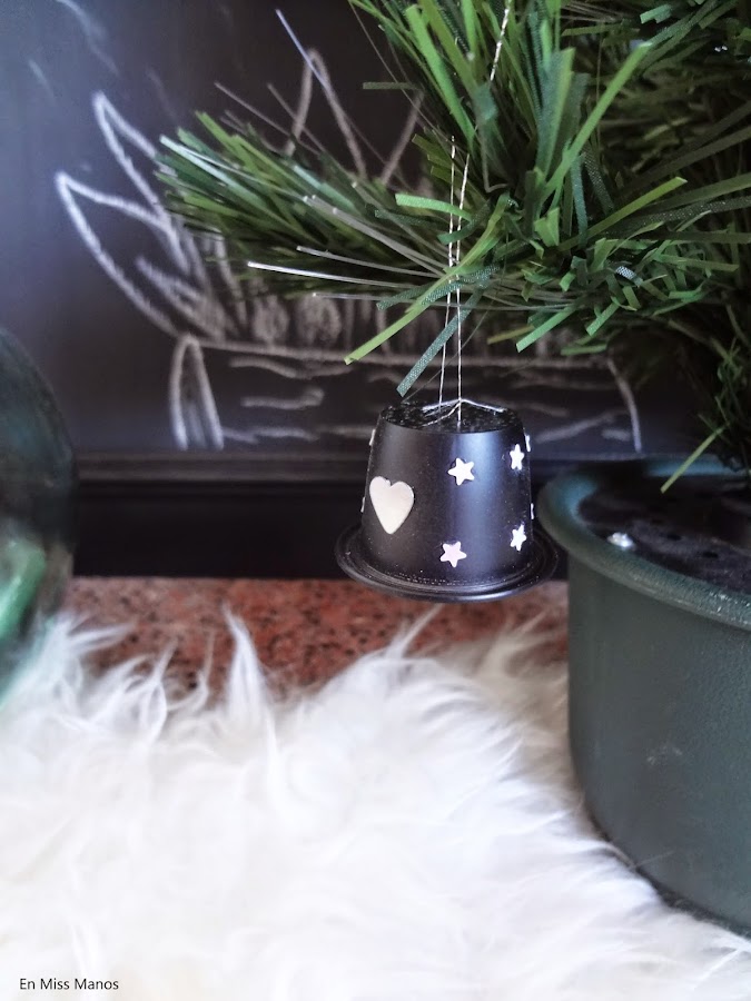 Y para terminar os enseño las campanitas con cápsulas de café que hice la Navidad pasada. Puedes ver su paso a paso aquí.