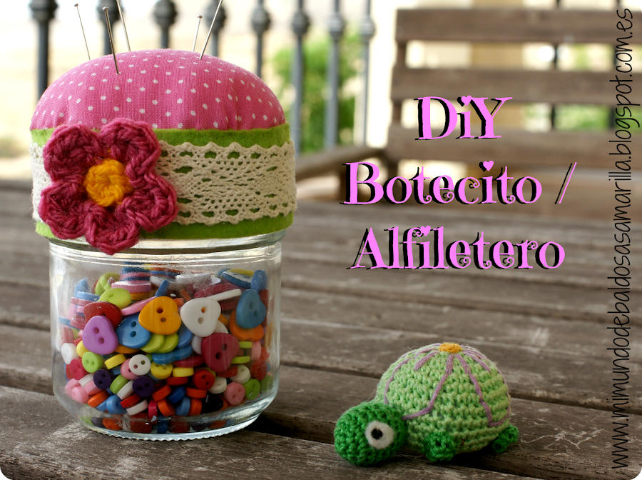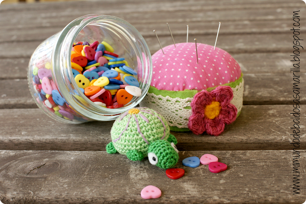 Es un pequeño bote alfiletero que voy a utilizar para guardar todos mis botones, que no son pocos! Imagino que ya los habréis visto por ahí, sobre todo... las que os guste utilizar Pinterest, yo desde la primera vez.. me encantaron y tenía muchas ganas de hacer mi propia versión.