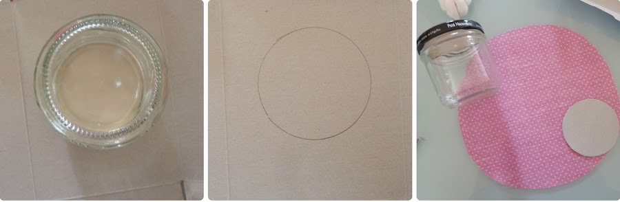 ? Después coloqué el tarrito sobre un trozo de cartón, marqué el contorno de la tapa y la recorté.