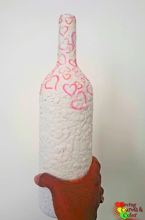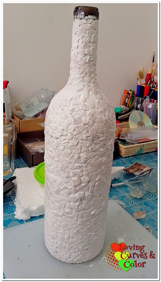 Y repitiendo lo anterior vas pegando por donde desees todos tus recortes de papel, en mi caso yo la quería en toda la botella.