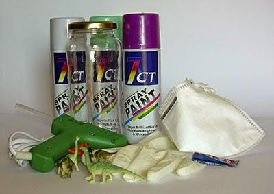 Figuritas de plástico (podéis escoger la forma y el tamaño que mejor se adapte al bote. Yo he comprado unas figuritas de dinosaurios en una tienda multiprecio (es decir, "los chinos", anteriormente conocidos como "los veinte duros").