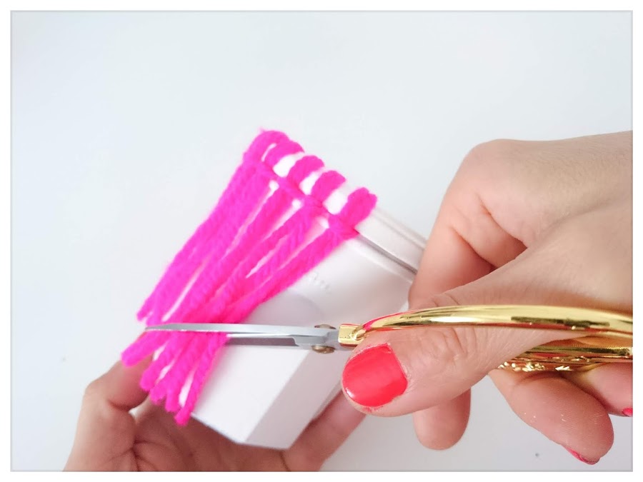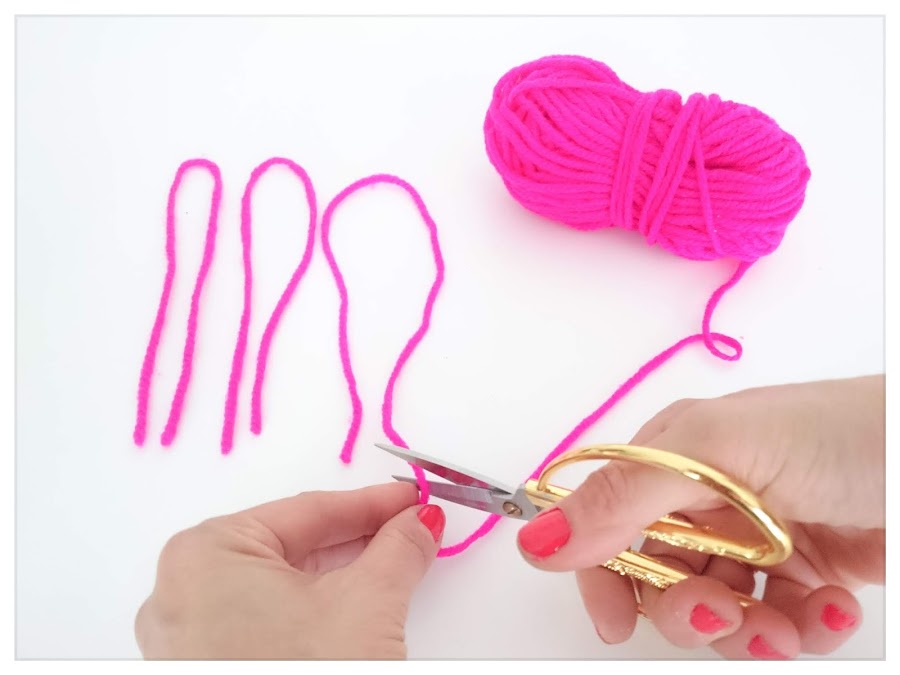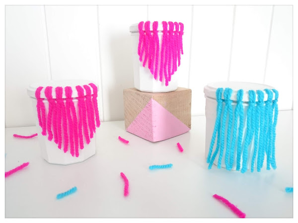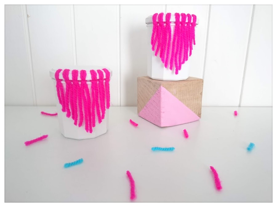 Dejar secar el tarro el tiempo necesario y cortar 7 trozos de lana.