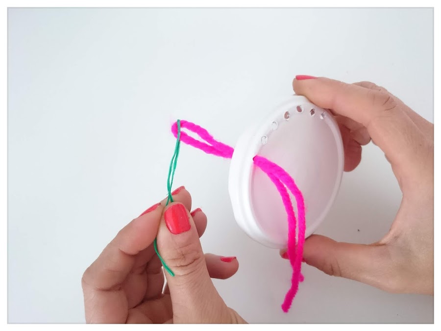 Coger las dos puntas que quedan colgando de la lana y pasarlas por el centro