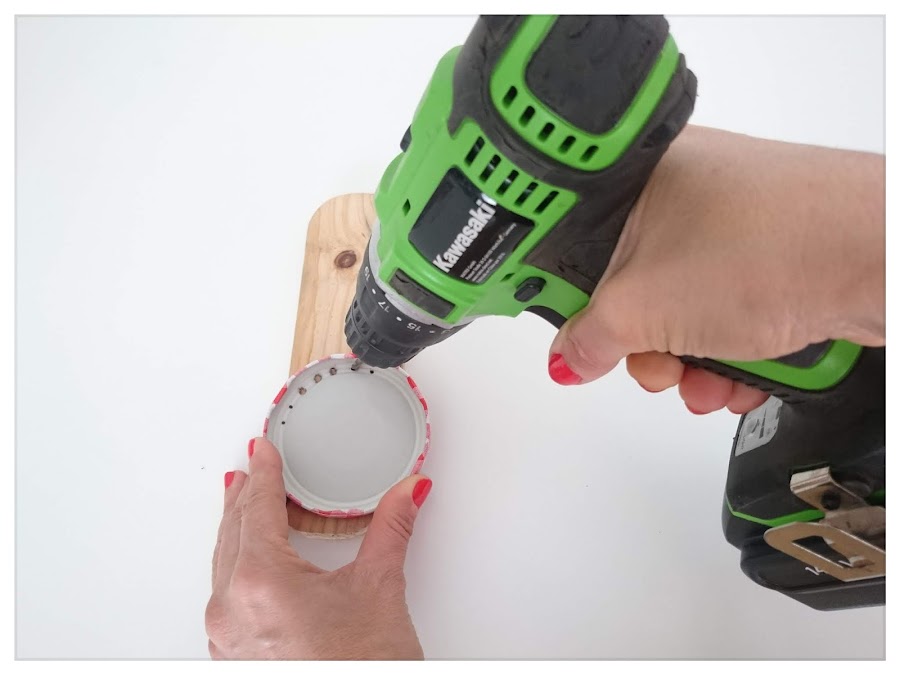 Utilizar el taladro y una broca pequeña para metal, para hacer todos los agujeros marcados.