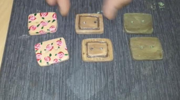 Y hasta aquí ya tenemos la parte principal y más importante. Ahora nos queda decorarlo. Si tenéis un pirograbador, os pueden quedar unos botones muy bonitos. Yo no tengo, así que unos los he grabado con la multiherramienta y los he pintado, y otros solo los he pintado. Para que veáis que no es necesaria ninguna herramienta.