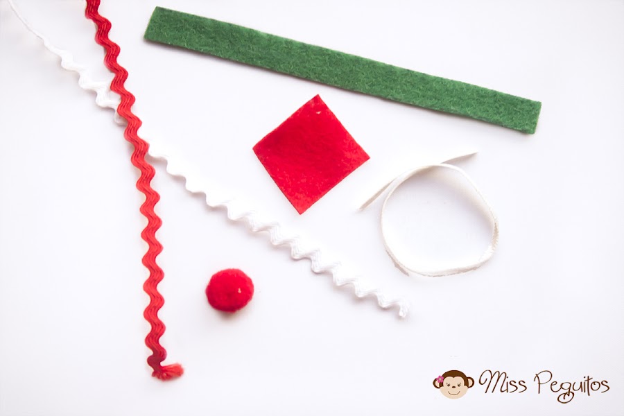 Los materiales son fáciles de encontrar, cintas, fieltro, piquillo o picunela (según lo llaméis), madroños, y si queréis decorarlos podéis utilizar lentejuelas, botones, mostacilla, todo lo que se os ocurra o tengáis a mano.