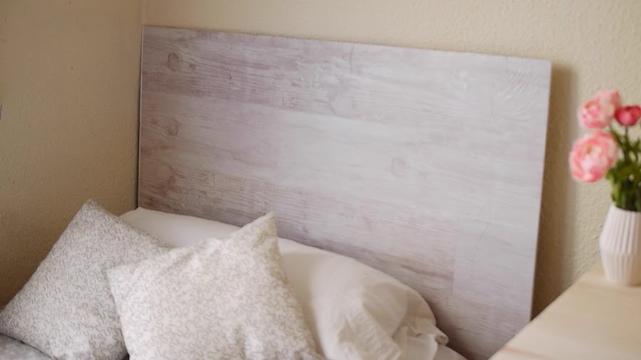 Para hacer este bonito, original y barato cabecero de cama lo que necesitas es: un cartón pluma grande (este es de 100x70cm), lápiz, regla, tijeras y el vinilo de madera adhesivo que más te guste. Échale un ojo a la web porque hay de todos los tonos y acabados.