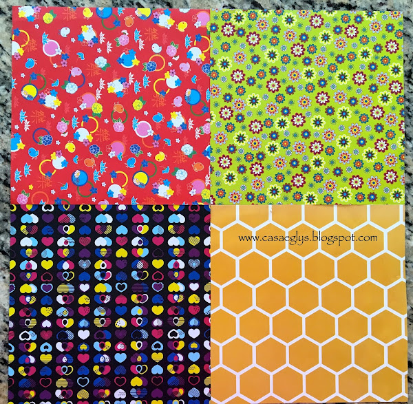 8 laminas de papel cuadradas.