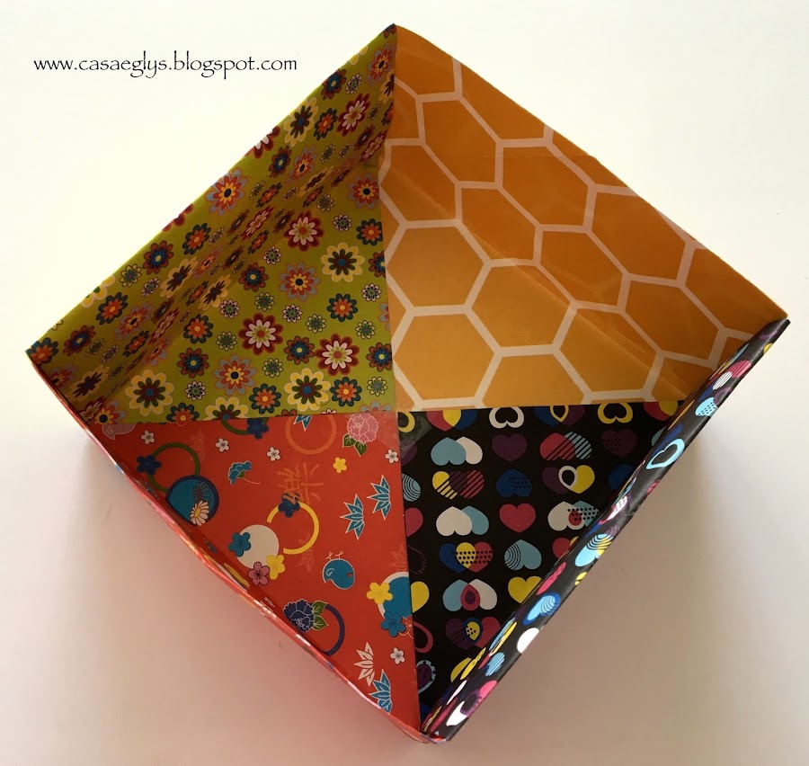Y ahora para formar la caja, solo presiona hacia adentro la parte sobrante de los laterales de manera que se forme como un triángulo, la verdad es que por los dobleces sólito saldrá.