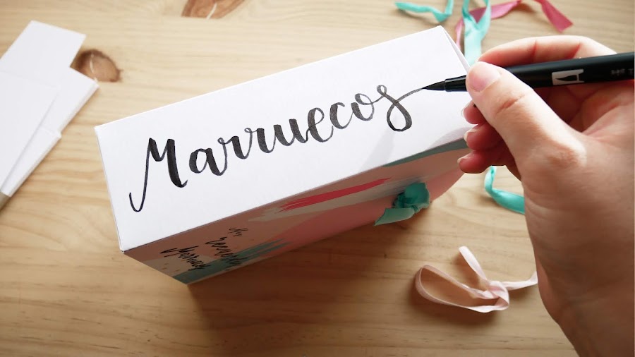 Y para hacer el diy, además de las cajitas, que ya te las envían desde Selfpackaging con el cordoncito y la cinta de doble para para que las puedas pegar, te hará falta: rotuladores (yo he cogido de punta de pincel para hacer lettering), unas tijeras para cortar el cordón y yo he añadido también unos lacitos de colores.