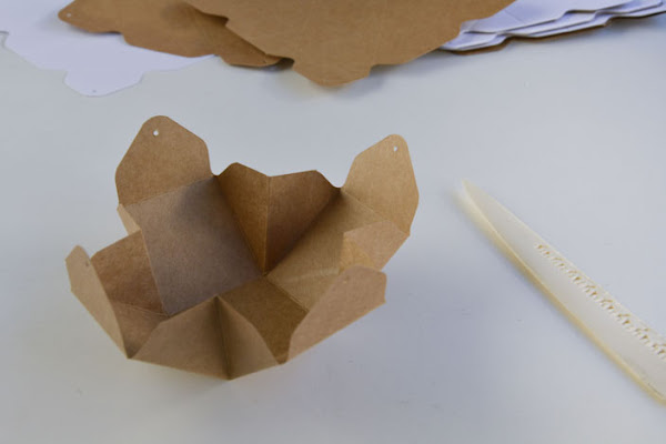 Para montar las cajitas sólo tenemos que seguir los dobleces y marcarlos bien con ayuda de una plegadora, una regla o lo que tengáis a mano. Luego pegamos las solapas laterales para que queden bien cerraditas, pero podéis dejarlas sin pegar si os gusta más.