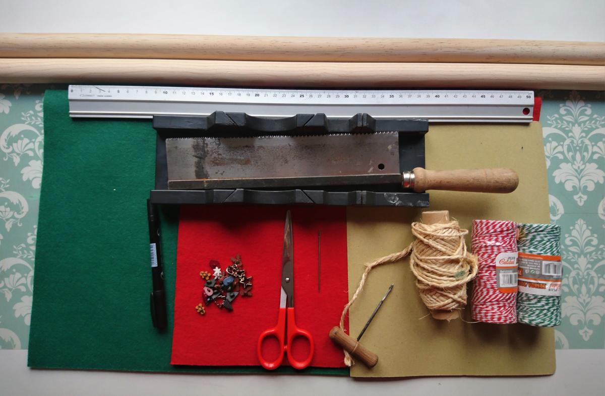 Empezaremos cortando cuatro palos iguales de madera, en mi caso miden 50 cm de largo. Para que el corte fuera recto, me ayude de una caja de ingletes. Y luego lijamos los extremos.