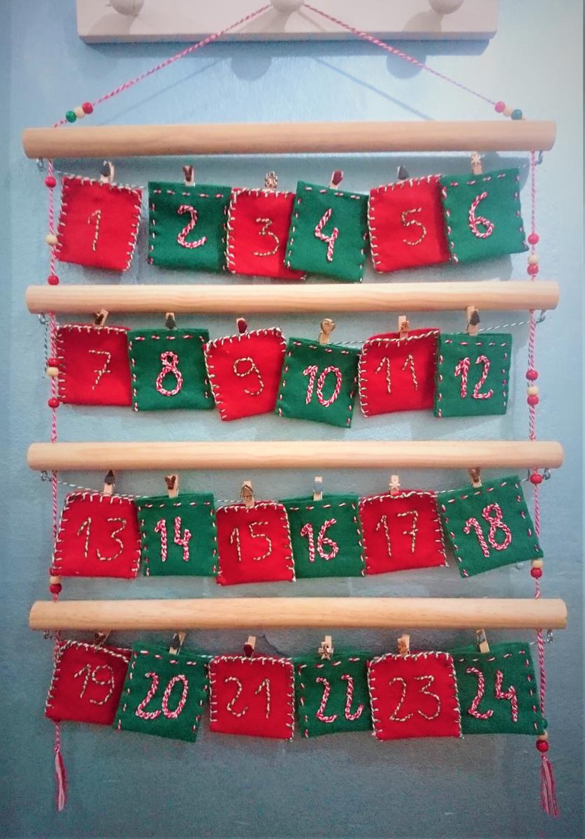 Habitualmente, todos los calendarios que veía en las tiendas, estaban hechos con un pedazo de tela con motivos navideños al cual cosían unos bolsillos.